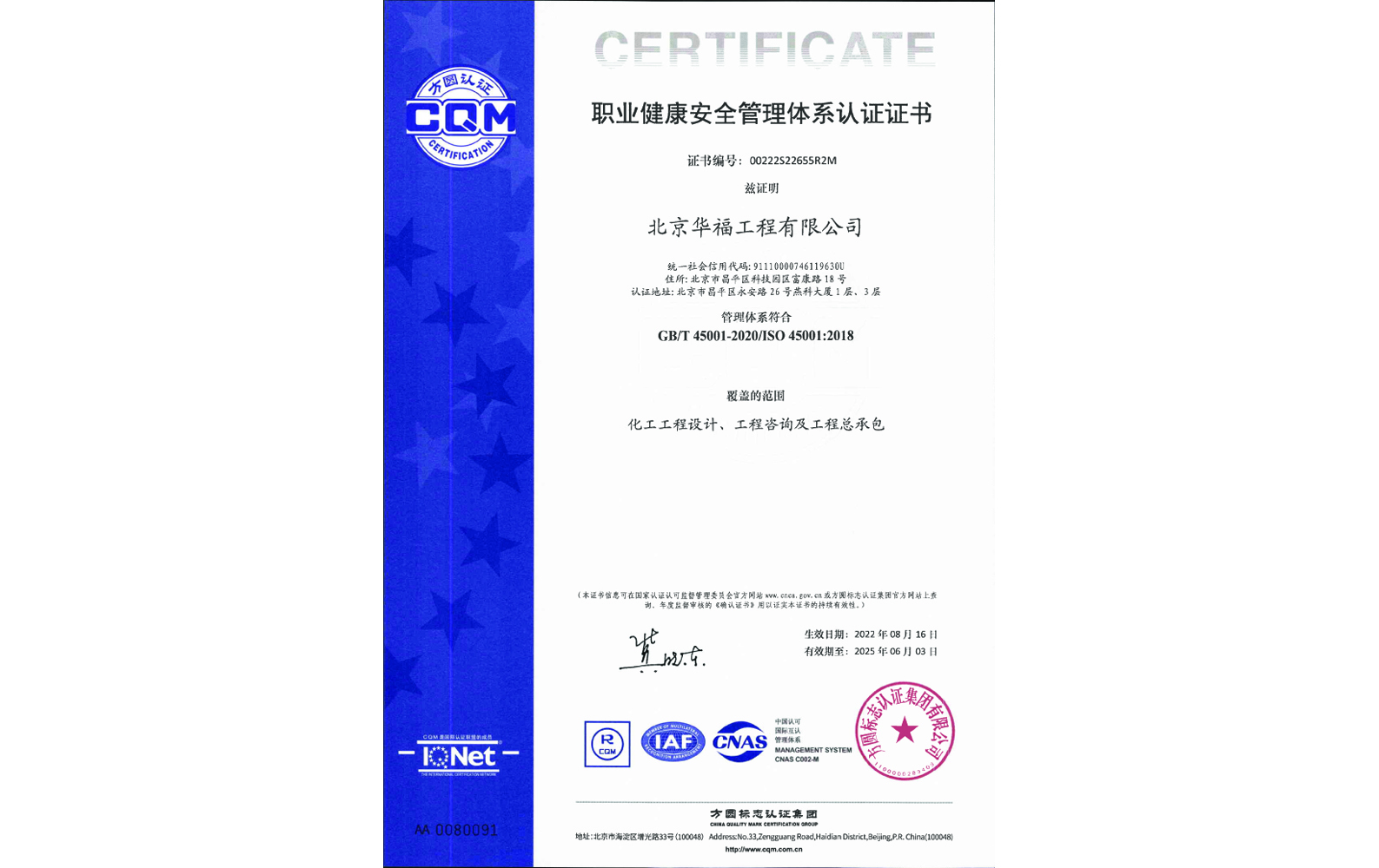 Quality Management System Certificate